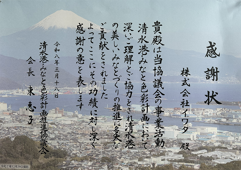 『清水港・みなと色彩計画推進事業』における日々の活動を評価していただきました。
