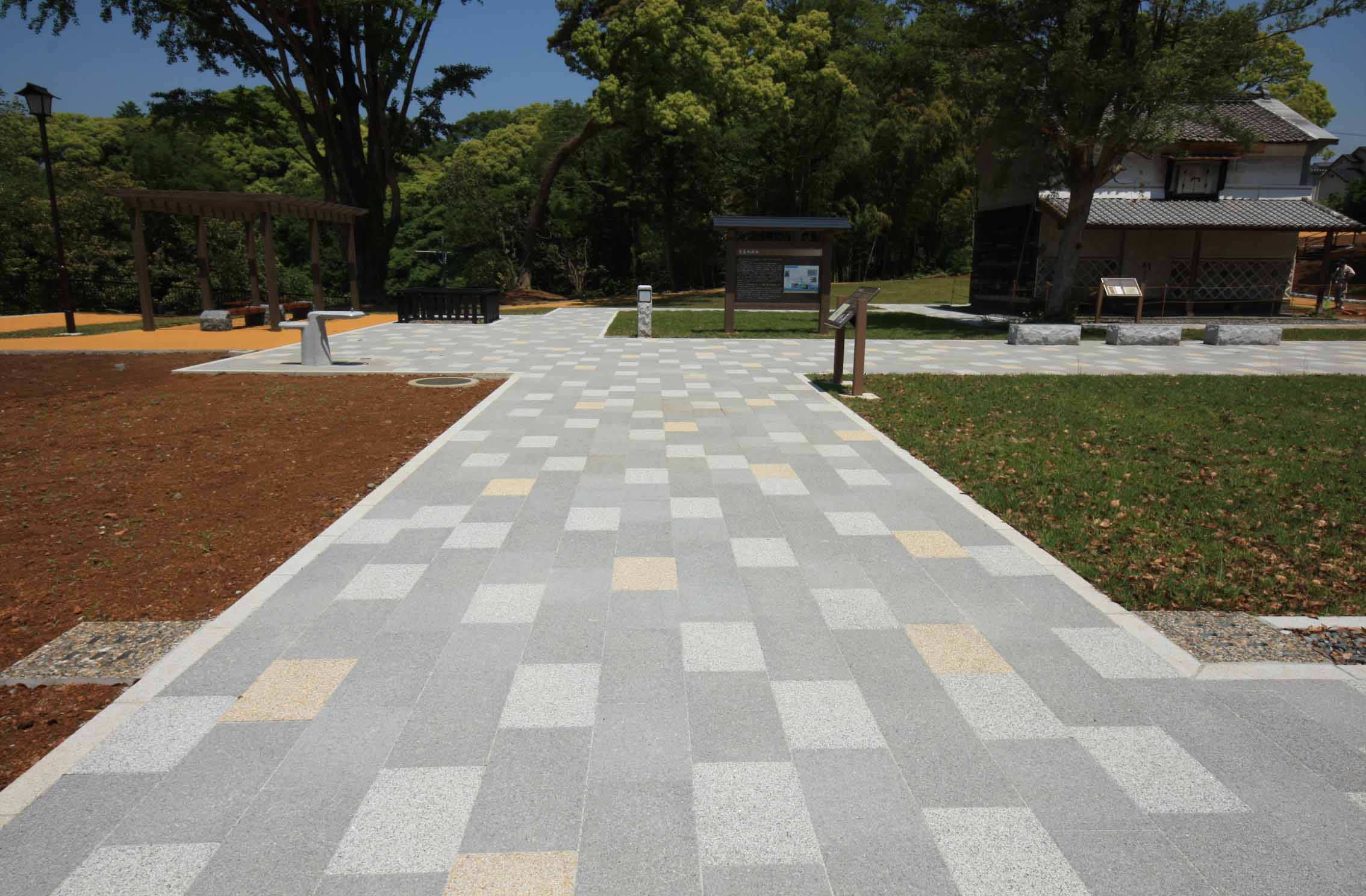 公園内の和風な建築物に合うモダンなデザイン。