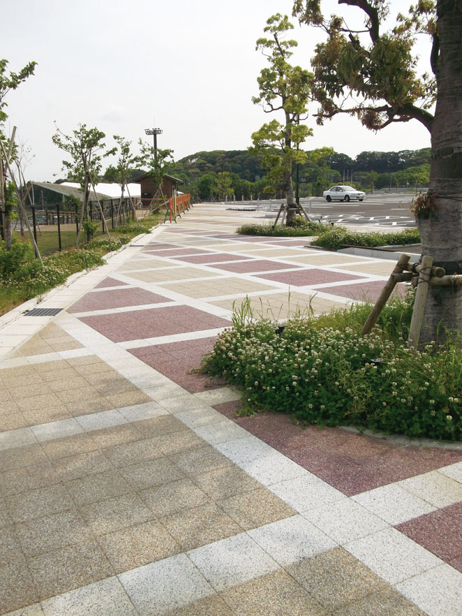 洗い出し製品が違和感なく空間に馴染み、植物のグリーンをより鮮やかにみせるデザイン。 関連製品:洗い出し