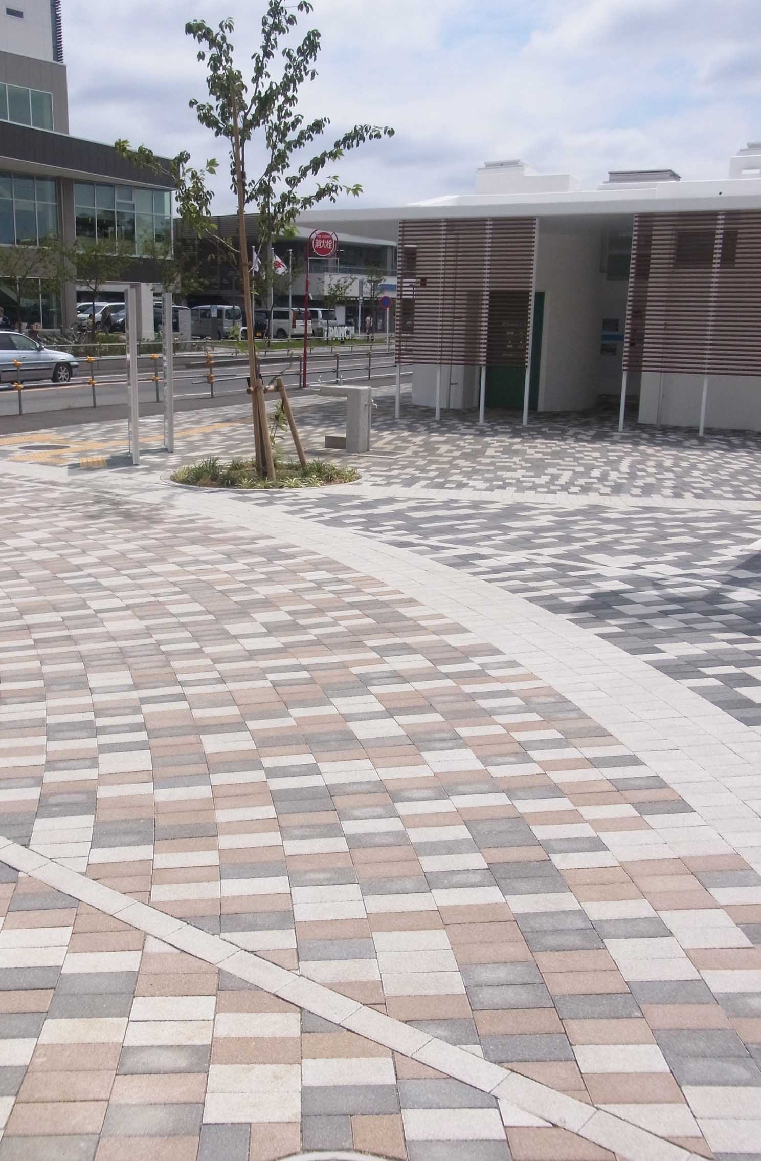 ツートンカラーの円貼りデザインでおしゃれな公園になりました。 関連製品:クランチ