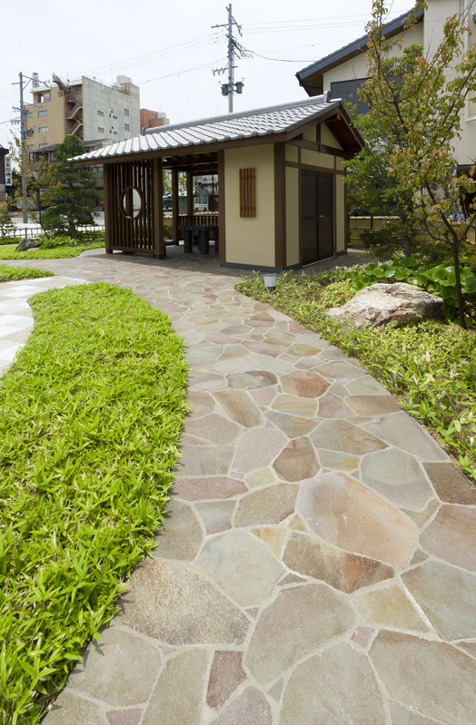 乱形の天然石材。休憩所の雰囲気にあわせて提案。 関連製品:天然石材